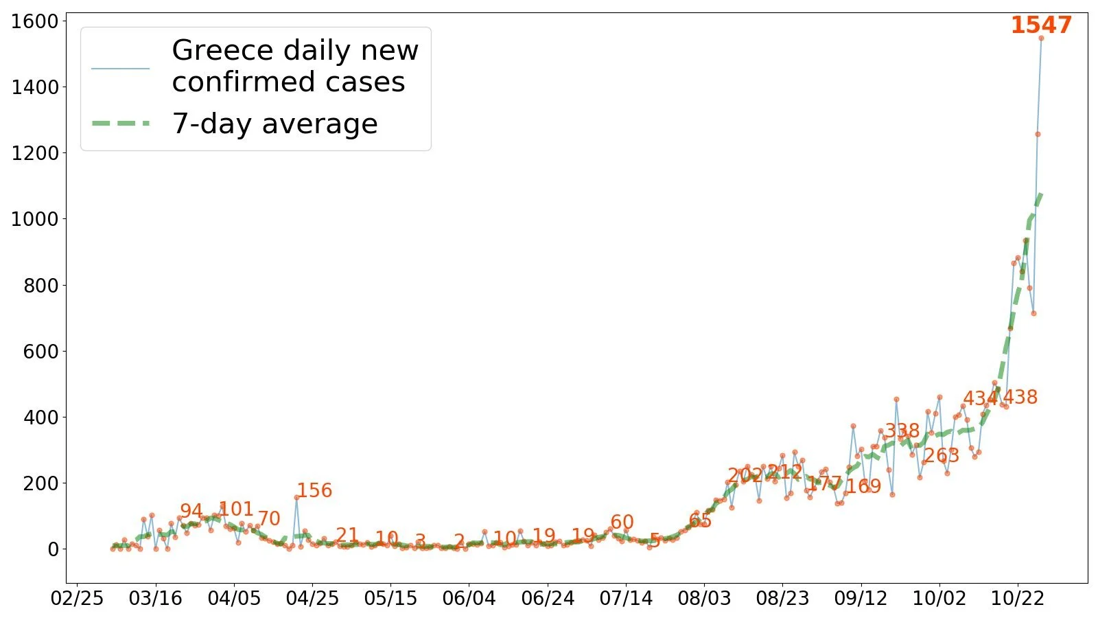 Turkey reported 3,223 cases yesterday, seeing the highest daily cases in half a year for the 5th consecutive day.